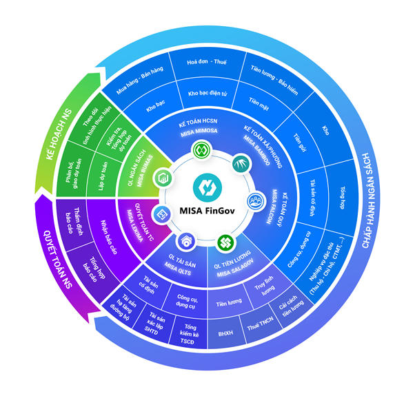 Bên cạnh MISA AMIS, nền tảng MISA FinGov cũng được công nhận là Thương hiệu quốc gia. Đây là giải pháp tiên phong thúc đẩy Chính phủ số trong việc quản trị tài chính Nhà nước tại Việt Nam. Tích hợp các nghiệp vụ trên một hệ thống duy nhất, MISA FinGov tự động hóa quy trình ngân sách cho cơ quan Nhà nước, giúp tăng 70% năng suất, giảm 80% công sức và 50% chi phí hàng năm, đảm bảo quy trình vận hành trơn tru. Nền tảng còn hỗ trợ quản lý thông tin tài chính tập trung từ Cơ quan tài chính đến đơn vị trực thuộc, đóng góp vào cơ sở dữ liệu tài chính quốc gia. Hiện tại, MISA FinGov đang hỗ trợ chuyển đổi số cho 50.000 đơn vị hành chính tại 63 tỉnh thành.