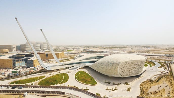 Trông như một loài côn trùng, hoặc phương tiện đi lại của tương lai, Khoa Nghiên cứu Hồi giáo Qatar tại Doha thực tế là nơi mang phong cách giáo dục mới: Một nơi kết hợp giữa tín ngưỡng, kiến thức và hiện đại. Tòa nhà này thể hiện tính “giáo dục” theo một nét rất riêng: Năm cột lớn tượng trưng cho năm trụ cột của Hồi giáo và Thư pháp Ả Rập.