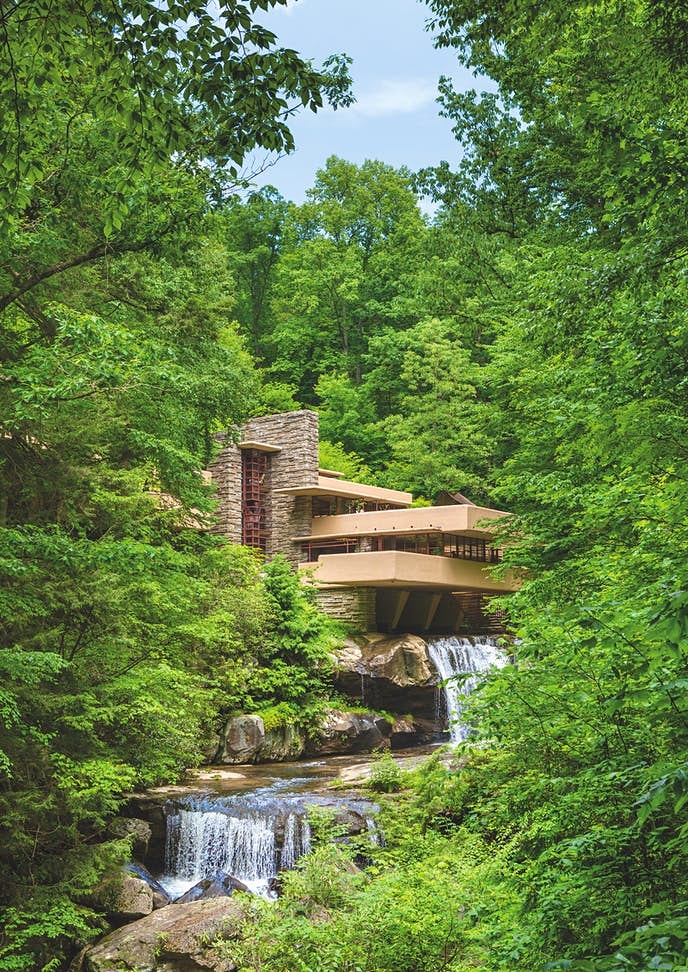 Công trình được thiết kế cho doanh nhân Edgar J Kaufmann – chủ sở hữu Trung tâm thương mại Kaufmann. Trở thành một bảo tàng năm 1964 và được liệt vào Di tích lịch sử Quốc gia, Fallingwater là tác phẩm đẹp nhất của Wright, pha trộn kiến trúc và cảnh quan để trở thành công trình tuyệt đẹp trên lạch nước.