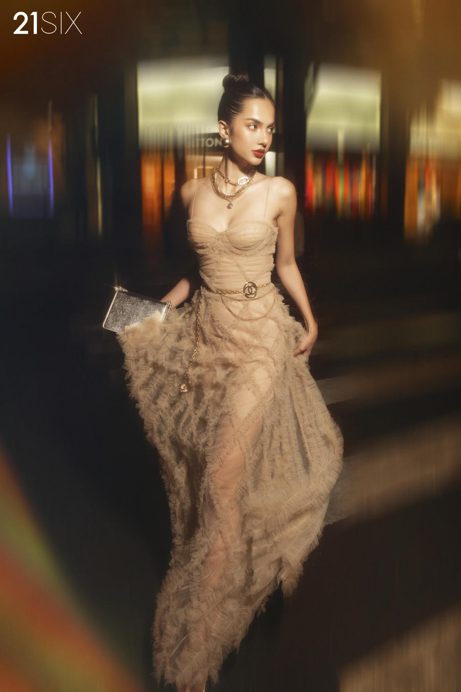 Hãy dạo bước cùng cô gái 21 Six xuống phố, bạn sẽ bắt gặp vẻ đẹp thanh lịch, thời thượng với phong cách đa dạng cho những buổi trà chiều. Vẻ đẹp yêu kiều, lộng lẫy như một nàng công chúa đang trên đường đến vũ hội khi thành phố lên đèn. Cả thành phố như bừng sáng cùng vẻ đẹp của cô ấy!