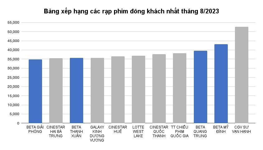 Tại thời điểm tháng 8 năm 2023 (thời gian trước thềm Khai giảng và nghỉ lễ Quốc Khánh), tổng doanh thu của thị trường rạp chiếu Việt Nam đạt mức gần 130 tỷ đồng, với hơn 2 triệu lượt vé bán ra. Trong đó, bảng xếp hạng top 11 rạp chiếu phim có lượt bán vé cao nhất cũng được công bố.