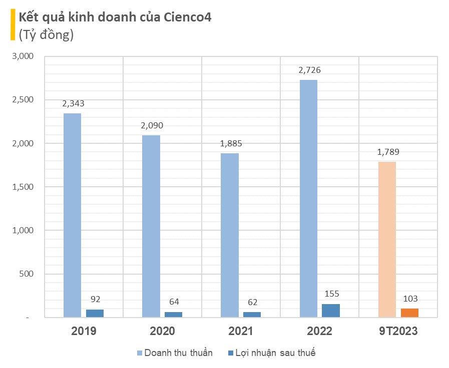 Về kinh doanh, mảng xây dựng là hoạt động kinh doanh chính chiếm hơn 60% doanh thu qua các năm của C4G. 9 tháng đầu năm 2023, Cienco4 ghi nhận doanh thu thuần đạt 1.789 tỷ, lãi sau thuế 103 tỷ đồng.