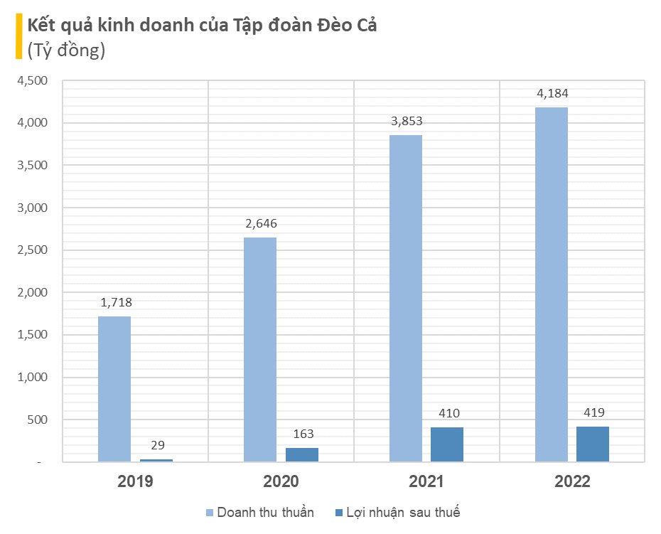 Doanh thu hợp nhất của Tập đoàn đã tăng trưởng liên tục 3 năm với tỷ lệ trung bình 36%/năm. Năm 2022, doanh thu Đèo Cả đạt 4.184 tỷ đồng, lợi nhuận sau thuế 419 tỷ đồng.