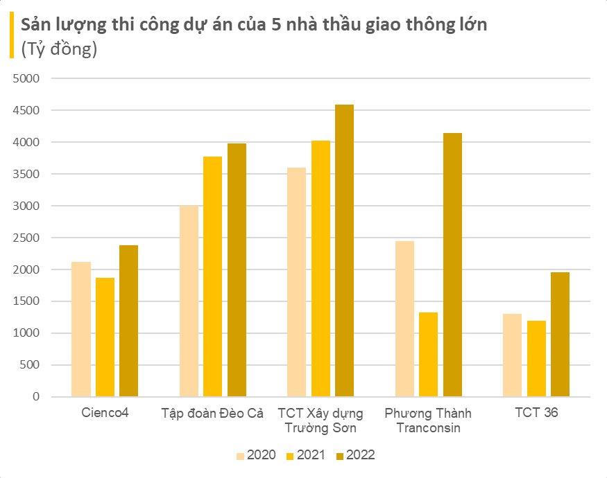 Tính riêng năm 2022, sản lượng thi công dự án của 5 nhà thầu giao thông này là hơn 17.000 tỷ đồng.