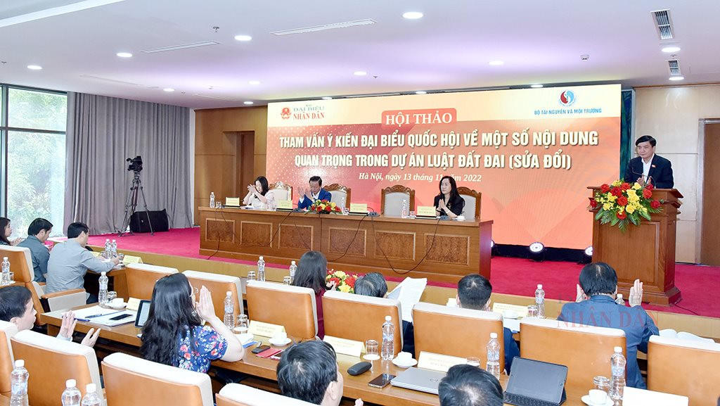 Bộ Tài nguyên và Môi trường vừa phối hợp với Văn phòng Quốc hội, Báo Đại biểu Nhân dân tổ chức Hội thảo tham vấn ý kiến Đại biểu Quốc hội về một số nội dung quan trọng trong dự án Luật Đất đai (sửa đổi).