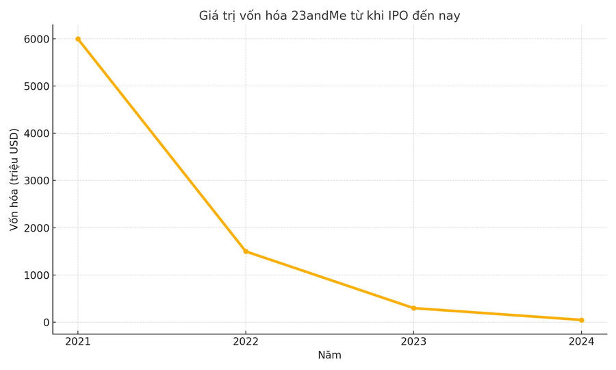 Theo thông tin từ Wall Street Journal, 23andMe đã chính thức nộp đơn bảo hộ phá sản tại Mỹ với khoản tài sản và nợ phải trả ước tính dao động từ 100 đến 500 triệu USD. Việc phá sản đánh dấu hồi kết đầy tiếc nuối cho một trong những kỳ lân công nghệ sinh học từng được định giá tới 6 tỷ USD khi IPO vào năm 2021.