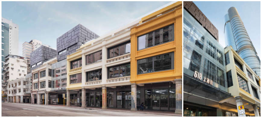 Tổ hợp tòa nhà 618 Shanghai Street: Phố Thượng Hải ban đầu là con đường dọc theo bờ sông với các bến phà ở cuối đường. Năm 1855, khu vực này được cải tạo và thu hút nhiều người đến sống. Số 618 phố Thượng Hải là đoạn gồm 14 tòa nhà cũ, được cơ quan quy hoạch đô thị cải tạo. Trong số 14 ngôi nhà, có 10 căn là tong lau - kiểu nhà chung cư Trung Hoa có ban công, 4 tòa nhà còn lại được xây thời hậu chiến. Ảnh: 618 Shanghai Street - Cơ quan Cải tạo Đô thị.