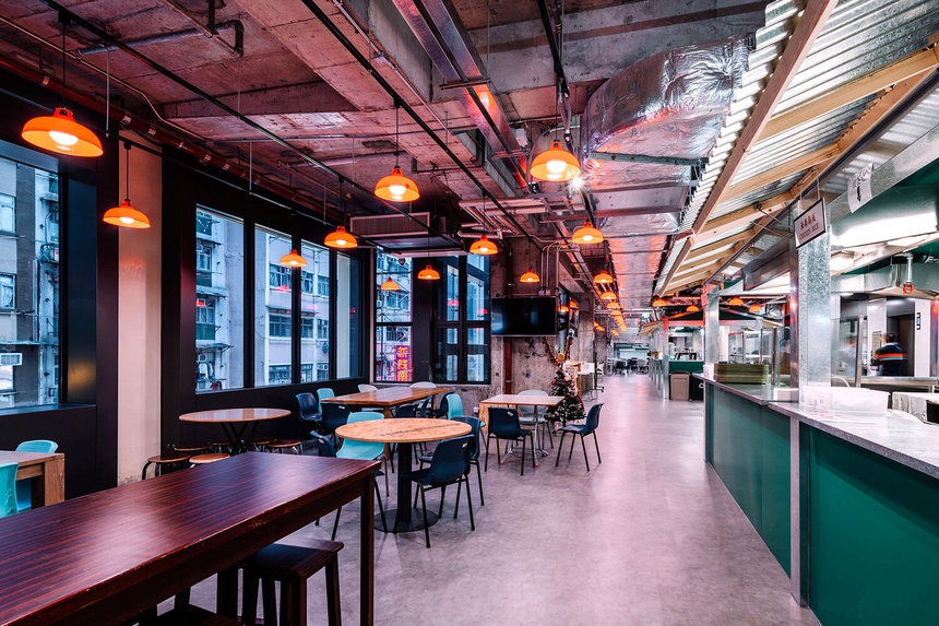 Các bức tường bên ngoài tòa nhà ban đầu xây bằng gạch đỏ rồi được cư dân tân trang với các màu khác nhau qua năm tháng. Trong quá trình bảo tồn, người ta giữ lại những màu sơn này. Dự án cải tạo hoàn thành năm 2020, các tòa nhà ngày nay là khu mua sắm và nhà hàng với không gian thoáng đãng. Ảnh: Lu Tang Lai Architects.