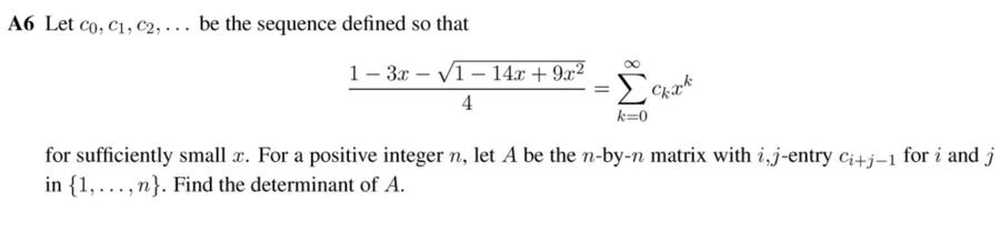 Được biết trong kỳ thi Putnam 2025, hơn 500 người tham gia cuộc thi đã không giải được bài toán về tìm định thức của ma trận A theo các điều kiện cho trước như dưới đây: