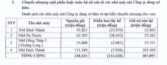 Đại hội đồng cổ đông AGM thống nhất việc chuyển nhượng một phần hoặc toàn bộ số cổ phần/phần vốn góp của Công ty tại các công ty con, công ty liên doanh, liên kết. Đồng thời, thống nhất việc chuyển nhượng một phần hoặc toàn bộ tài sản là các nhà máy mà Công ty đang sở hữu.