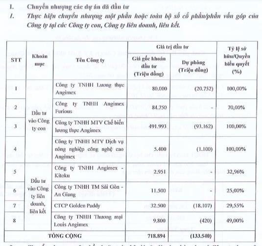 Báo cáo tài chính bán niên 2023 hợp nhất đã được soát xét của Angimex ghi nhận lỗ luỹ kế hơn 125 tỷ đồng, trong khi vốn điều lệ 182 tỷ đồng. Angimex đưa ra 2 phương án khắc phục nguy cơ lỗ lũy kế vượt vốn điều lệ thực góp và đã được Đại hội đồng cổ đông thông qua.