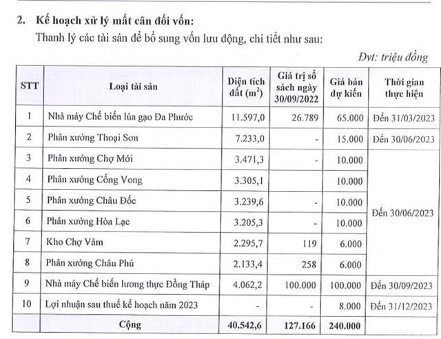 Với những yêu cầu của trái chủ, Angimex được thông qua phương án xử lý một số tài sản đảm bảo trái phiếu; vay trung – dài hạn; thanh lý tài sản không cần dùng, các kho đang dừng hoạt động để lấy tiền trả nợ, lãi trái phiếu.