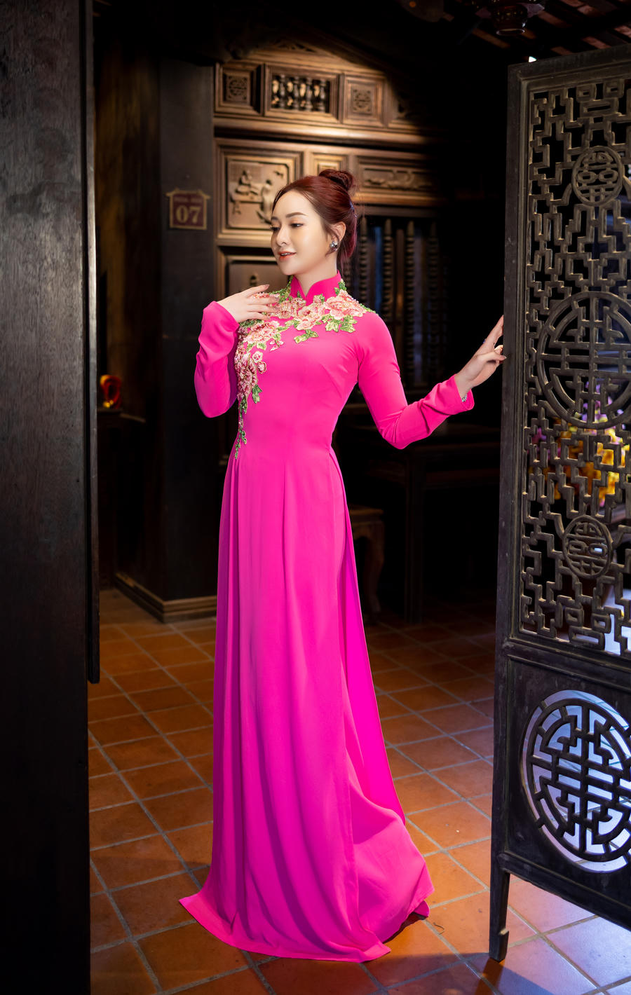 Nhà thiết kế lựa chọn sử dụng chất liệu vải cao cấp, mềm mại, có độ co giãn để tạo ra những mẫu áo dài sang trọng, quý phái nhưng vẫn giữ được sự thoải mái khi di chuyển trong buổi tiệc.