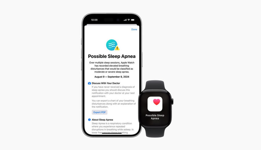 Trong khi đó, Apple Watch (dòng Series 9, Series 10 hoặc Ultra 2) giờ đây có thể theo dõi và phát hiện nguy cơ ngưng thở khi ngủ. Thiết bị sử dụng cảm biến chuyển động để ghi nhận các dao động liên quan đến hô hấp trong khi người dùng ngủ, sau đó phân tích dữ liệu trong 30 ngày. Nếu phát hiện các dấu hiệu bất thường ở mức trung bình hoặc nặng, hệ thống sẽ gửi thông báo cùng báo cáo chi tiết để người dùng có thể tham khảo ý kiến bác sĩ. Mặc dù không thay thế thiết bị chẩn đoán chuyên dụng, tính năng này vẫn đóng vai trò quan trọng trong việc phát hiện sớm - một yếu tố then chốt trong điều trị hiệu quả chứng ngưng thở khi ngủ.