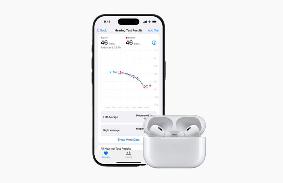 Với tính năng trợ thính, người dùng AirPods Pro 2 có thể thực hiện một bài kiểm tra thính lực ngắn ngay trên iPhone, iPad hoặc máy Mac. Hệ thống sẽ phát các âm thanh ở nhiều dải tần khác nhau, sau đó ghi lại phản hồi và tạo ra một biểu đồ audiogram được lưu trữ trong ứng dụng Health (Sức khỏe). Dựa trên kết quả này, tai nghe sẽ tự động điều chỉnh âm thanh để phù hợp với thính lực của từng người, mang lại trải nghiệm nghe rõ ràng và thoải mái hơn trong các tình huống giao tiếp hàng ngày.