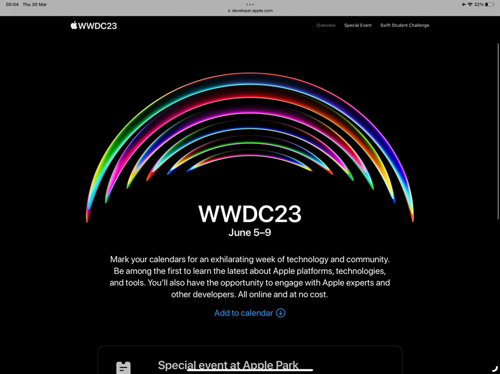 Apple mới đây đã công bố sẽ tổ chức Hội nghị các nhà phát triển WWDC 2023 từ ngày 5 tháng 6 đến ngày 9 tháng 6 tới đây. Đây là một sự kiện trực tuyến trên kênh YouTube cũng như trang web chính thức của hãng.