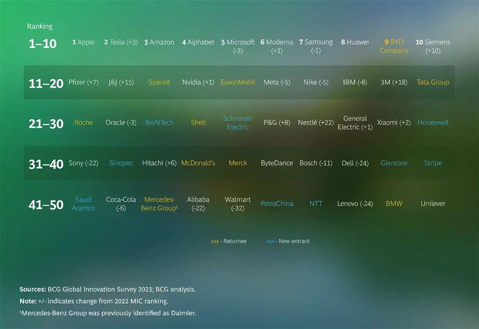 Một báo cáo mới của các nhà phân tích BCG đã xếp hạng 10 công ty sáng tạo nhất thế giới vào năm 2023 dựa trên trọng tâm đổi mới của từng công ty trong năm qua cùng với việc ứng dụng các công nghệ mới như trí tuệ nhân tạo chẳng hạn.