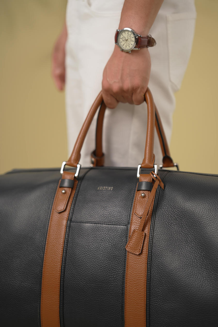 Đặc biệt, bộ sưu tập Hùng Vương của Aristino lấy cảm hứng từ trang phục quyền uy của các vị vua Hùng – biểu tượng của sức mạnh và uy quyền tuyệt đối. Các họa tiết hoa văn trống đồng, chất liệu thô mộc như vải lanh, da thú kết hợp cùng chi tiết kim loại được chế tác tinh xảo đã tái hiện sống động đời sống văn hóa phong phú thời kỳ dựng nước. Đây không chỉ là những thiết kế thủ công độc đáo mà còn là lời tri ân sâu sắc tới di sản văn hóa dân tộc, tiếp nối huyền thoại qua từng sản phẩm. Với chất liệu da bò cao cấp từ Ý, sản phẩm toát lên sự sang trọng, quyền lực và đẳng cấp. Thiết kế tông đen chủ đạo cùng những chi tiết đan cài tinh xảo không chỉ mang nét đẹp quyền quý mà còn tạo tính linh hoạt khi sử dụng, gợi nhắc đến sức mạnh bền vững và tinh thần bất khuất của dân tộc Việt Nam.