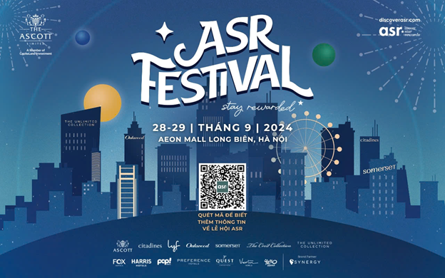 The Ascott Limited (Ascott), đơn vị kinh doanh dịch vụ khách sạn, lưu trú thuộc sở hữu hoàn toàn của CapitaLand Investment vừa công bố lần đầu tiên tổ chức Lễ hội Ascott Star Rewards - ASR Festival sẽ diễn ra trong hai ngày từ 28 đến 29 tháng 9 năm 2024 với mục đích đánh dấu cột mốc 40 năm thành lập. Sự kiện cũng là lời cảm ơn mà đội ngũ Ascott muốn gửi tới khách hàng – những người đã luôn tin tưởng và đồng hành cùng Ascott trong suốt thời gian qua. Lễ hội ASR mong muốn mang thông điệp của chiến dịch toàn cầu “Ascott Unlimited – Khám phá không giới hạn cùng Ascott” tới gần hơn với các khách hàng Việt Nam.