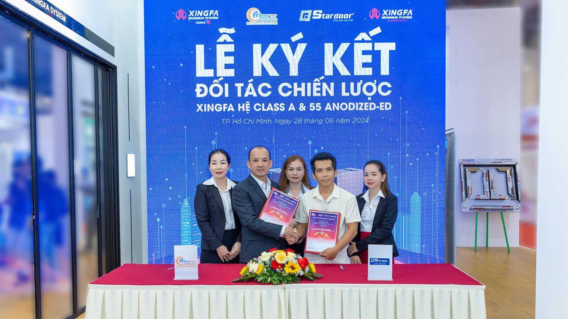 Hòa nhịp xu hướng sản xuất ANODIZED-ED, ngày 28/6/2024, tại gian hàng Xingfa Quảng Đông, ASEANWINDOW tổ chức Lễ ký kết đại lý - Đơn vị sản xuất chiến lược Xingfa hệ Class A, Xingfa hệ 55 ANODIZED-ED với các Đối tác Công ty TNHH Xây Dựng TMDV Nhân Tâm (Stardoor), Công ty Tiến Hưng, Công ty Tiến Đạt, Công ty TNHH TMDV Xây Dựng Hưng Long; Công ty MD DOOR, Công ty TNHH Xây Dựng Lê Toàn, tiếp tục khẳng định mối quan hệ hợp tác bền vững cùng phát triển giữa các bên.
