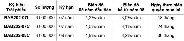 Từ ngày 07/10/2024, Ngân hàng TMCP Bắc Á (BAC A BANK) chính thức chào bán 15 triệu trái phiếu phát hành ra công chúng Lần 2 – Đợt 2, với tổng giá trị chào bán 1.500 tỷ đồng. Sản phẩm Trái phiếu Ngân hàng TMCP Bắc Á phát hành ra công chúng Lần 2 - Đợt 2 được áp dụng mức lãi suất cao hơn mức lãi suất tiền gửi cá nhân thông thường kỳ hạn 12 tháng, với biên độ tối đa lên tới 1,9%/năm; các nhà đầu tư cá nhân cũng như các tổ chức có thể dễ dàng sở hữu khoản đầu tư chỉ lần lượt từ 50.000.000 VND và 100.000.000 VND. Tại đợt phát hành này, Trái phiếu BAC A BANK có mệnh giá 100.000VND /trái phiếu; được trả lãi định kỳ 12 tháng/ lần; gồm hai kỳ hạn 07 năm và 08 năm. Thời gian dự kiến mua lại trái phiếu chỉ sau 18 tháng, 24 tháng và 36 tháng kể từ ngày phát hành, tương ứng với từng ký hiệu trái phiếu.