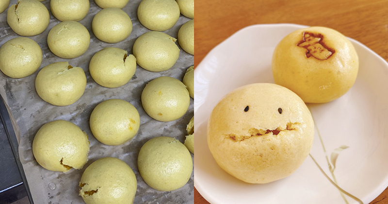 Số lượng “sản phẩm lỗi này” nhiều đến mức những người thợ làm bánh không thể đổ bỏ hết chúng vì quá tiếc nuối. Bởi vậy, họ đã nảy ra một sáng kiến là mang tới một “diện mạo mới” cho những chiếc bánh bị nứt vỡ bằng một cách vô cùng giản đơn: gắn lên chúng 2 hạt mè đen để tạo thành những gương mặt biểu cảm.
