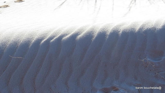 Xuất hiện khi nhiệt độ hạ tới -3 độ C, lớp băng được ví như pha lê lấp lánh trên những đụn cát của sa mạc Sahara.