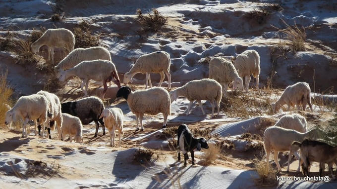 Năm nay Bouchetata không bỏ lỡ khoảnh khắc hiếm có khi những đụn cát Sahara đổi màu.