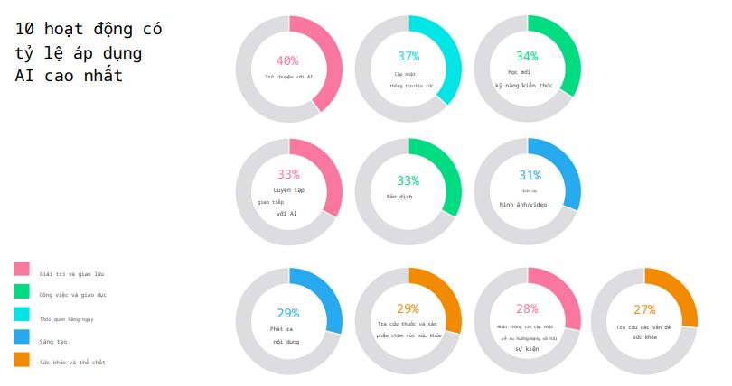 Đáng chú ý, việc ứng dụng AI còn được xem là một công cụ hỗ trợ tài chính, khi có đến một nửa số người dùng trả phí đăng ký cho biết họ sử dụng AI để kiếm tiền.