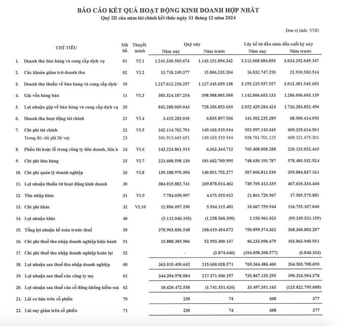 Giá vốn hàng bán giảm nhẹ, qua đó giúp lợi nhuận gộp tăng từ 1.726 tỷ đồng lên mức 2.051 tỷ đồng. Doanh thu hoạt động tài chính tăng gấp đôi lên mức 141,5 tỷ đồng.