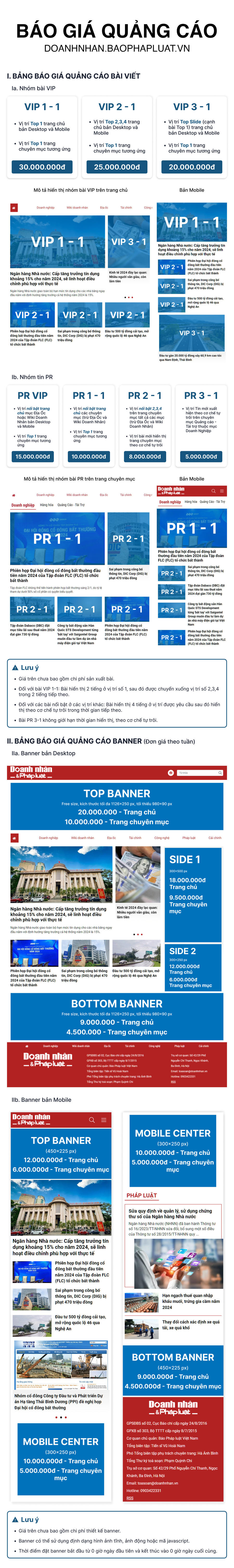 Báo giá quảng cáo Doanh nhân