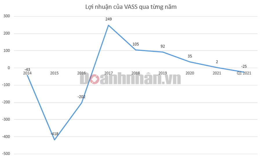 Nhìn lại quá trình hoạt động trong thời gian qua, VASS đã từng ghi nhận lỗ nặng 3 năm liền trong giai đoạn từ 2014 – 2016. Trong đó năm 2014 lỗ 43 tỷ đồng, năm 2015 lỗ nhiều nhất, lên tới 418 tỷ đồng, và năm 2016 lỗ 202 tỷ đồng. Sau giai đoạn này, VASS đã trải qua 5 năm liên tiếp ghi nhận lãi cho dù xu hướng lãi giảm mạnh trong nhưng năm gần đây.