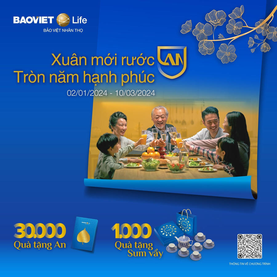 Luôn hoạt động vì lợi ích của người Việt, Bảo Việt Nhân thọ đã nỗ lực nghiên cứu và triển khai nhiều sản phẩm bảo hiểm ngày càng ưu việt, đáp ứng nhu cầu được bảo vệ và an tâm của các gia đình trước những rủi ro trong cuộc sống. Mừng năm mới, Bảo Việt Nhân thọ triển khai chương trình đầu xuân "Xuân mới rước An – tròn năm Hạnh phúc" với gần 30.000 quà tặng “An” ý nghĩa và hơn 1.000 quà tặng “Sum vầy” cho các khách hàng của Bảo Việt Nhân thọ trên toàn quốc. Món quà là lời chúc năm mới An khang, gửi trao sự An yên và Bảo vệ chu toàn mà Bảo Việt Nhân thọ dành tặng cho các gia đình Việt trên hành trình xây dựng cuộc sống Hạnh phúc, viên mãn, tròn đầy. Chương trình kéo dài đến hết ngày 10/3/2024 trên toàn quốc. (Chi tiết tại https://bit.ly/baoctkmnammoi2024).