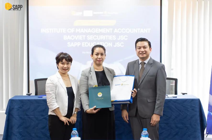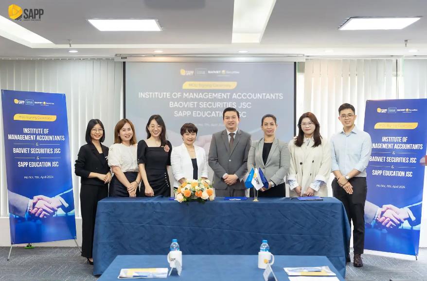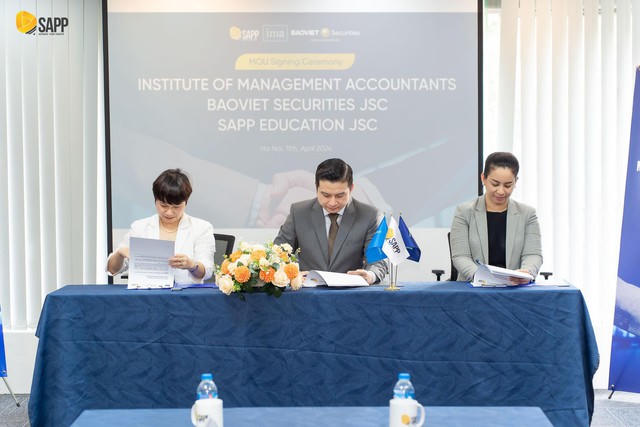 Chiều ngày 11/04/2024, các đại diện từ Institute of Management Accountants (IMA®), CTCP Chứng khoán Bảo Việt và CTCP Giáo dục SAPP đã cùng tham dự buổi Lễ ký kết Biên bản ghi nhớ về quan hệ hợp tác trong đào tạo các chứng chỉ tài chính do IMA tổ chức và quảng bá mô hình thực hành thành công của chứng chỉ CMA trong cộng đồng doanh nghiệp tài chính.