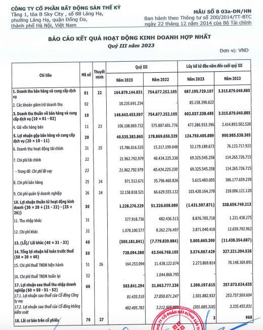 Về bức tranh tài chính, quý III/2023, CRE ghi nhận doanh thu thuần đạt 146,6 tỷ đồng, giảm 81% so với cùng kỳ.