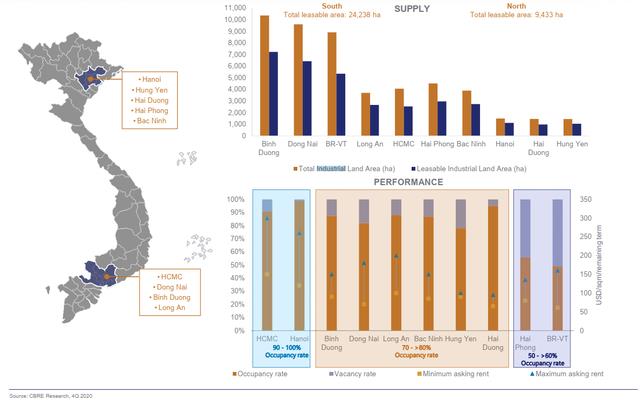 Trên thực tế, tỷ lệ lấp đầy khu công nghiệp của Hải Phòng cũng đang ở mức thấp so với các tỉnh công nghiệp hàng đầu cả nước. Một báo cáo của CTCP Vinhomes (thuộc Vingroup) khi nghiên cứu về lĩnh vực này cho rằng, tỷ lệ lấp đầy khu công nghiệp tại Hải Phòng mới đang ở mức 50 - 60%, điều này có nghĩa dư địa cho thuê vẫn còn lớn.