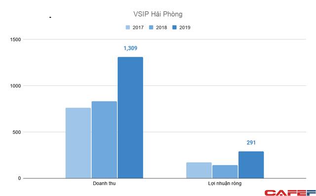 Năm 2019, doanh thu của VSIP Hải Phòng đạt mức 1.309 tỷ đồng, lợi nhuận ròng 291 tỷ đồng; năm trước đó hai chỉ tiêu này lần lượt đạt 830 tỷ đồng và 142 tỷ đồng.