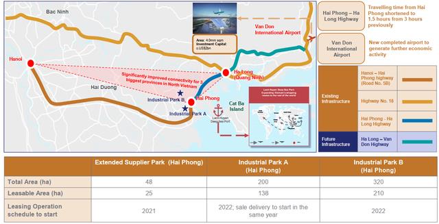 Kế hoạch phát triển bất động sản khu công nghiệp gồm việc mở rộng khu cho các nhà cung ứng 48 ha (VinFast), hai khu công nghiệp khác diện tích lần lượt 200 ha và 320 ha sẽ cho thuê từ năm 2022.