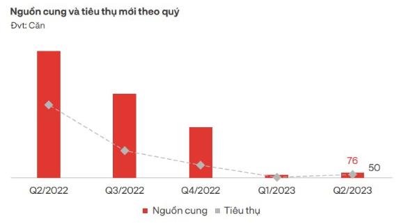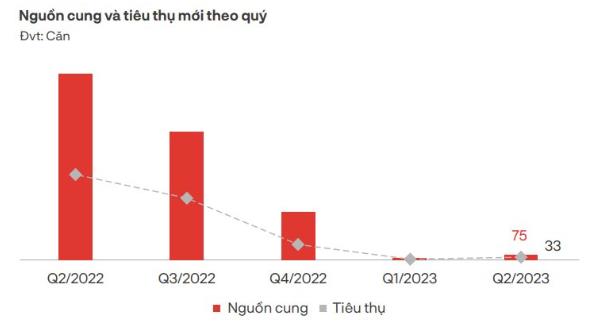 Nguồn cung mới cũng có sự cải thiện. Trong quý II có 5 dự án mở bán, tương ứng với 76 căn biệt thự. Con số này cao hơn so với 42 căn mở bán trong quý I nhưng vẫn thấp hơn 96% so với cùng kỳ năm ngoái. Mặt bằng giá sơ cấp không có nhiều biến động so với quý trước nhưng ghi nhận tăng nhẹ 1-2% so với cùng kỳ năm 2022.
