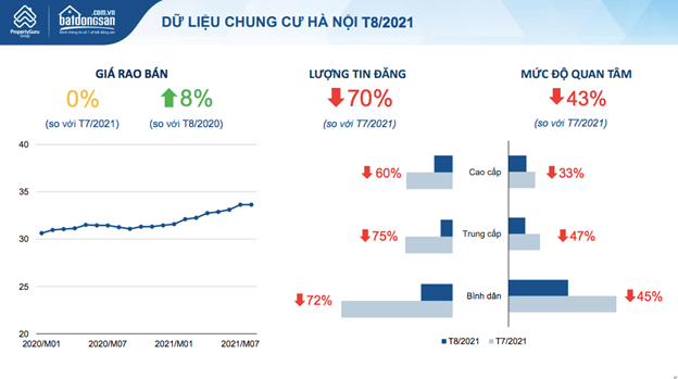 Theo trang thông tin batdongsan.com.vn, do dịch bệnh còn diễn biến phức tạp, thị trường bất động sản Việt Nam trong tháng 8/2021 tiếp tục chịu nhiều ảnh hưởng.