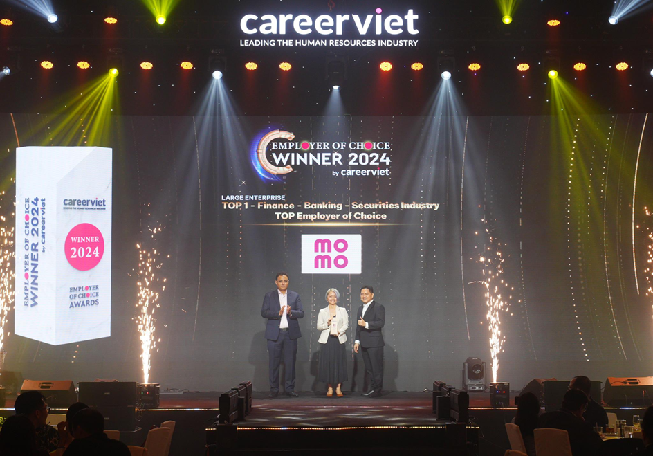 Ngày 5/12 vừa qua, MoMo đã được vinh danh là nhà tuyển dụng được yêu thích nhất ngành tài chính, ngân hàng, chứng khoán tại Lễ trao giải “Employer of Choice 2024” do CareerViet tổ chức.