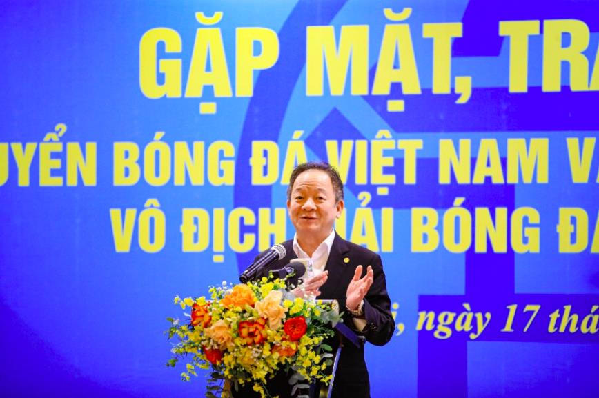 “Thành công của các bạn không chỉ là niềm tự hào của cá nhân, mà còn là niềm tự hào của cả thành phố Hà Nội. Các bạn đã chứng minh rằng với tinh thần đoàn kết, quyết tâm và nỗ lực không ngừng, chúng ta có thể đạt được những thành tựu tốt đẹp. Các bạn đã làm rạng danh màu cờ sắc áo của bóng đá thủ đô Hà Nội và đóng góp vào thành tích của bóng đá Việt Nam ở đấu trường khu vực”, Nhà sáng lập, Chủ tịch điều hành Tập đoàn T&T Group, Chủ tịch Ngân hàng SHB, ông Đỗ Quang Hiển phát biểu tại lễ vinh danh, khen thưởng.