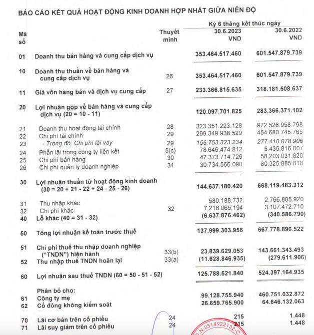 Dòng tiền kinh doanh 6 tháng đầu năm của doanh nghiệp được cải thiện với gần 591,6 tỷ đồng, trong khi cùng kỳ năm 2022 âm hơn 225,5 tỷ đồng.