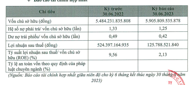 Tổng nợ phải trả của doanh nghiệp tính đến cuối tháng 6/2023 tăng 17% lên gần 7.407 tỷ đồng, chủ yếu là nợ ngắn hạn với 6.475 tỷ đồng. Trong đó, tổng dư nợ đi vay là 3.185 tỷ đồng.