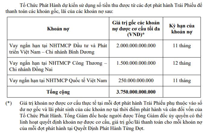 Becamex Group dự kiến sử dụng số tiền thu được từ các đợt phát hành trái phiếu để thanh toán các khoản gốc, lãi của các khoản nợ ngân hàng.