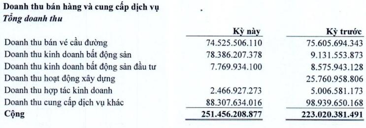 Trong đó, doanh thu từ kinh doanh bất động sản chiếm 78,3 tỷ đồng, trong đó gần 30 tỷ đồng đến từ việc chuyển nhượng quyền sử dụng đất cho CTCP Kinh doanh và Phát triển Bình Dương (mã ck: TDC).