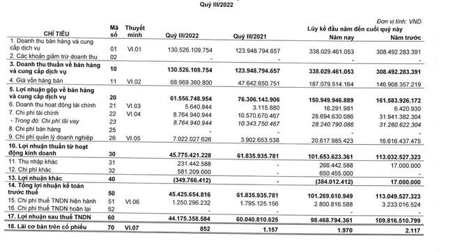 Lũy kế 9 tháng đầu năm, TNH thu được hơn 338 tỷ đồng doanh thu thuần, tăng 10% và hơn 98 tỷ đồng lợi nhuận ròng, giảm 10% so với cùng kỳ.