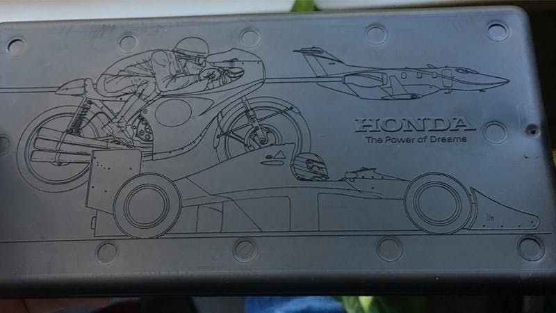 Lấy ví dụ như bức ảnh trên, chiếc mô tô trên cùng là Honda RV166; trong khi máy bay khắc họa lại hình ảnh của HondaJet; còn xe đua F1 bên dưới là chiếc McLaren MP4/5 cầm lái bởi tay đua huyền thoại Ayrton Senna sử dụng động cơ Honda V10.
