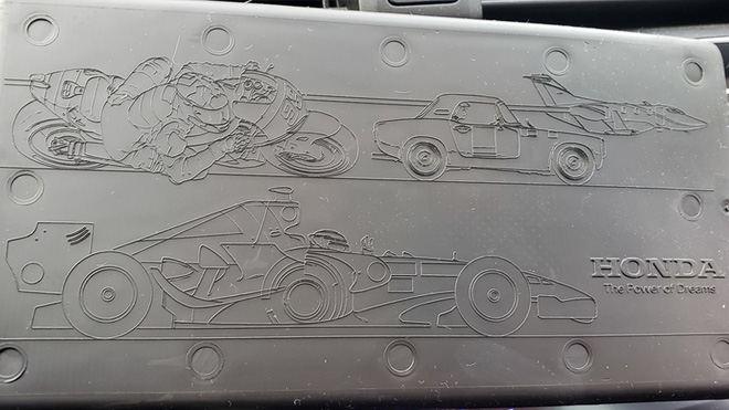 Cụ thể, bên dưới thảm trải sàn mỗi xe Honda Civic đời mới nhất (chỉ từ các cấu hình EX trở lên và cũng ngẫu nhiên xe nhận được xe không) là hàng loạt những hình ảnh gợi nhớ lại thành tựu mà thương hiệu Nhật đạt được ở nhiều lĩnh vực khác nhau như đua xe, xe máy, hàng không hay robot.