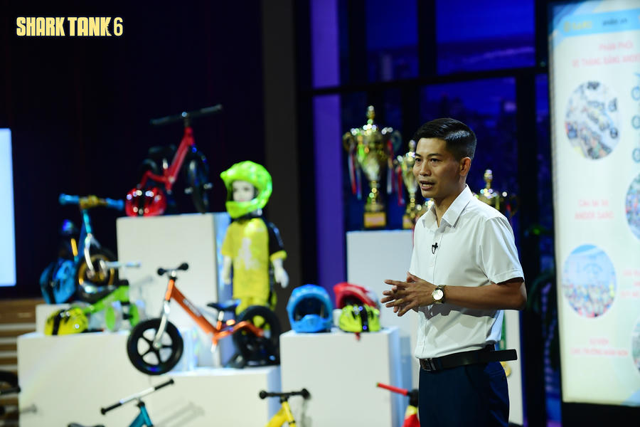 Ông Trần Quang Huy, Nhà sáng lập công ty cung cấp sản phẩm xe đạp thăng bằng Kiz đến với Shark Tank Việt Nam mùa 6 với mong muốn gọi số vốn 8 tỷ đồng cho 30% cổ phần.